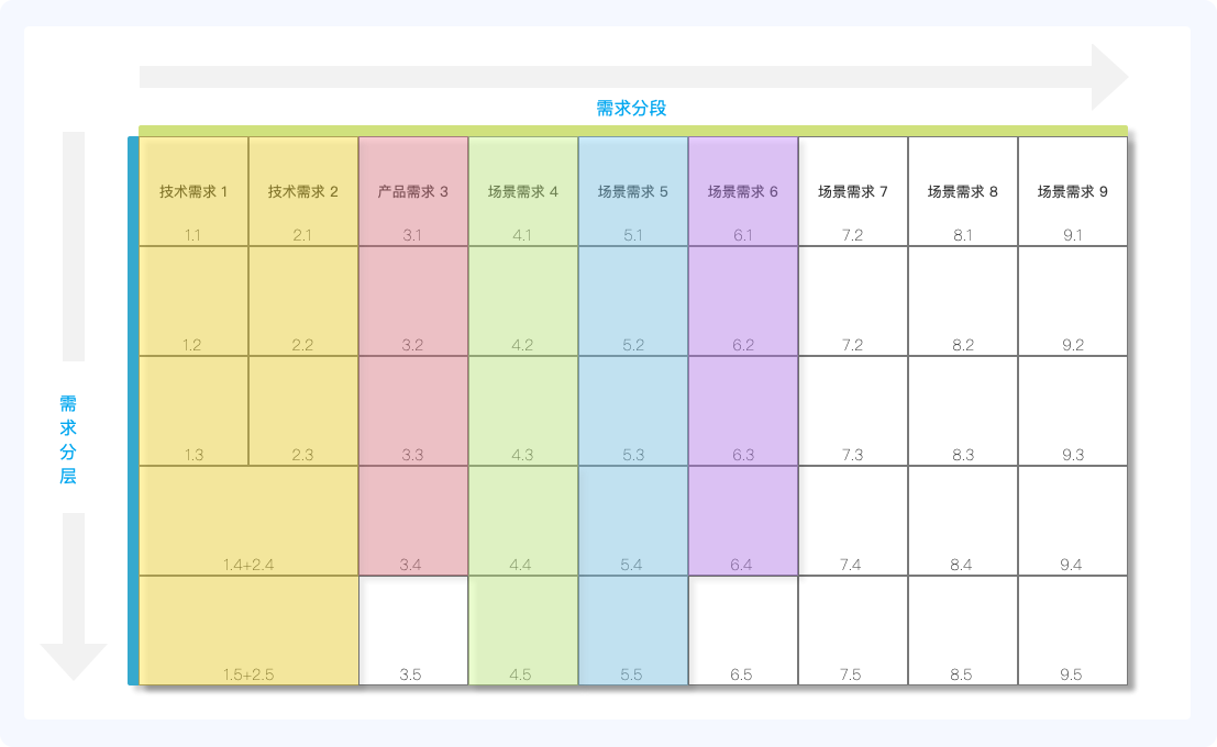 需求的管理,是给每一个需求打上标签、分层分段,形成一个个需求篓子,把需求分门别类地放入。理论上,所有的有效需求都应该在一个篓子里,如果没有,要么篓子不够,要么篓子不对。